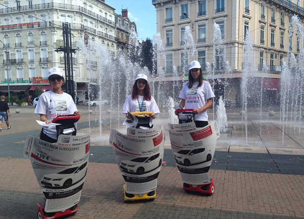 Les appareils de dernière génération offrent une grande maniabilité, un grand confort d’utilisation et près de 6 heures d’autonomie.Le gyropode peut circuler à la vitesse du pas en accédant à toutes les zones stratégiques de communication. Silencieux et écologique, il véhicule une image moderne et innovante, associée à l’annonceur.Pour une sécurité et une aisance maximale, nous assurons la formation des hôtesses au pilotage. Nous assurons également la maintenance et le suivi techniques de vos opérations avec des rapports journaliers.